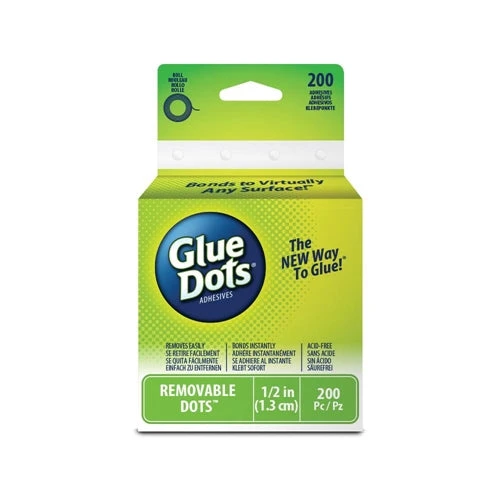 Removable adhesive that can be easily detached without leaving a messy residue or damaging surfaces. Secure lightweight items to surfaces such as paper, foam, plastic, metal, wood, glass and more. Acid-free, lignin-free and non-toxic.