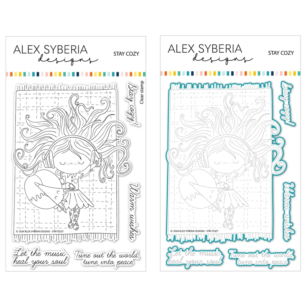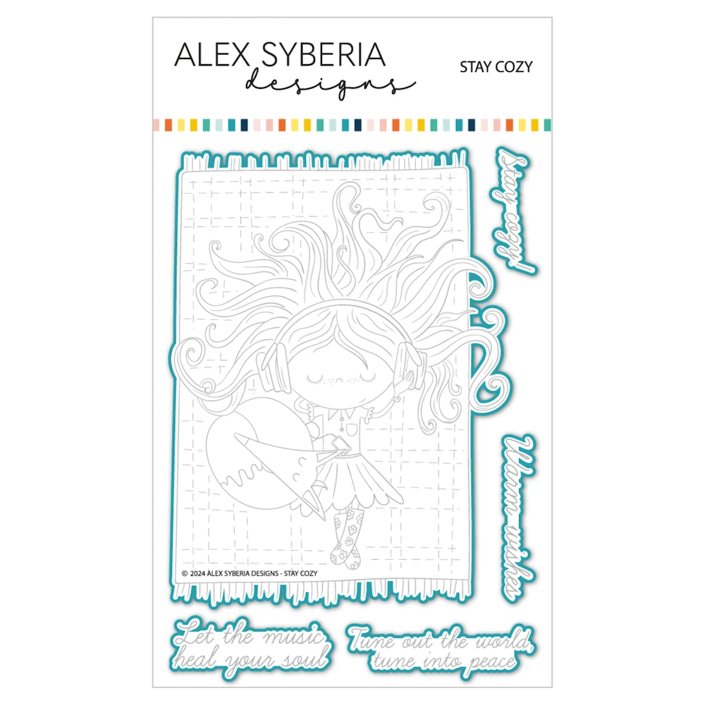 Embrace serenity with the Alex Syberia Designs Stay Cozy Stamp and Die Bundle. The 4 x 6 inch Stay Cozy Clear Stamp Set features a charming character enjoying peaceful moments with a cute fox, paired with heartwarming sentiments like,