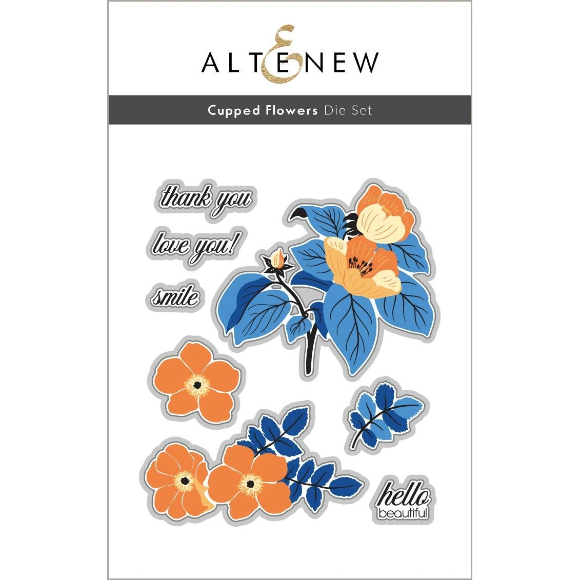 The Altenew Cupped Flowers Die Set perfectly complements the Cupped Flowers Stamp Set and offers matching dies for the two floral arrangements, an additional flower and branch, as well as sentiments. This set includes a total of 8 dies, allowing you to create beautifully coordinated and intricate designs for your projects.