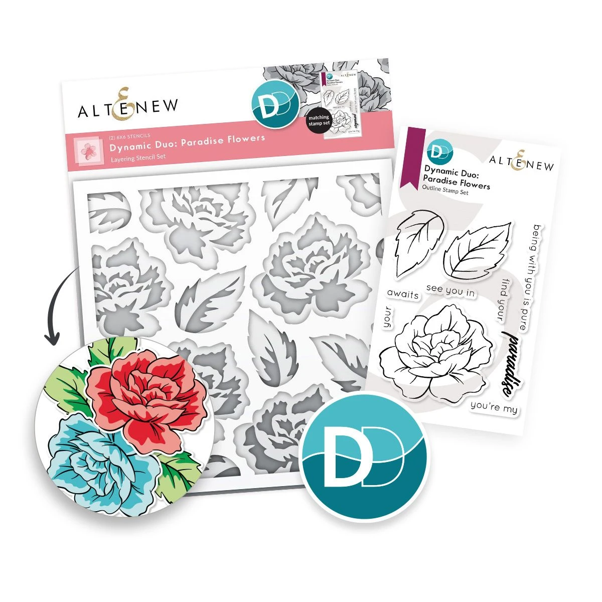 Indulge in the beauty of the Altenew Dynamic Duo: Paradise Flowers Clear Stamp and Stencil Set, your ticket to a floral paradise!