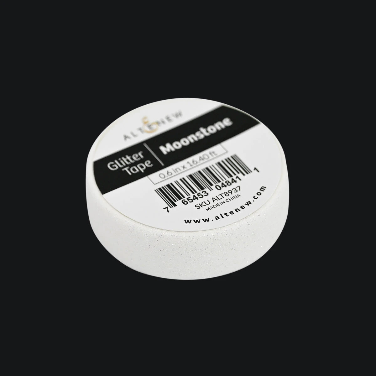 Add a touch of celestial sparkle to your paper crafting projects with the dazzling Moonstone Glitter Tape! The shimmering silver hue and glittery finish bring a luxurious, elegant touch to handmade cards, scrapbook layouts, journal pages, and more. Pair it with enamel dots and dye inks to elevate your DIY crafts with a glamorous flair.