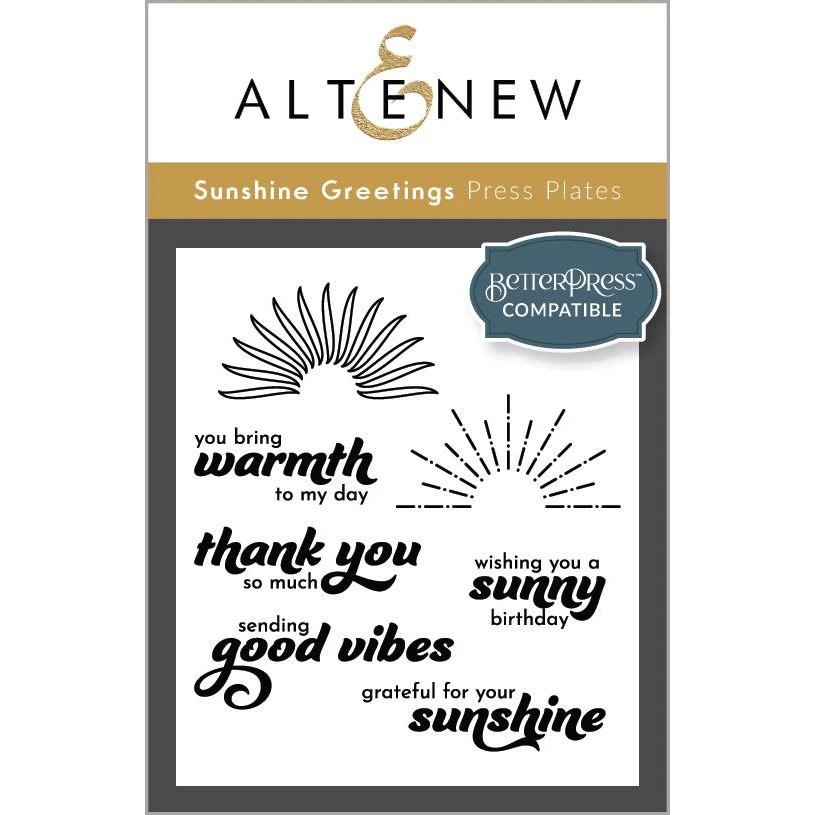 Introducing the Altenew Sunshine Greetings Press Plates, designed to infuse your projects with warmth and positivity! This cheerful press plate set features five sunny sentiments suitable for various occasions, along with two stylized sun images to accentuate your greetings.