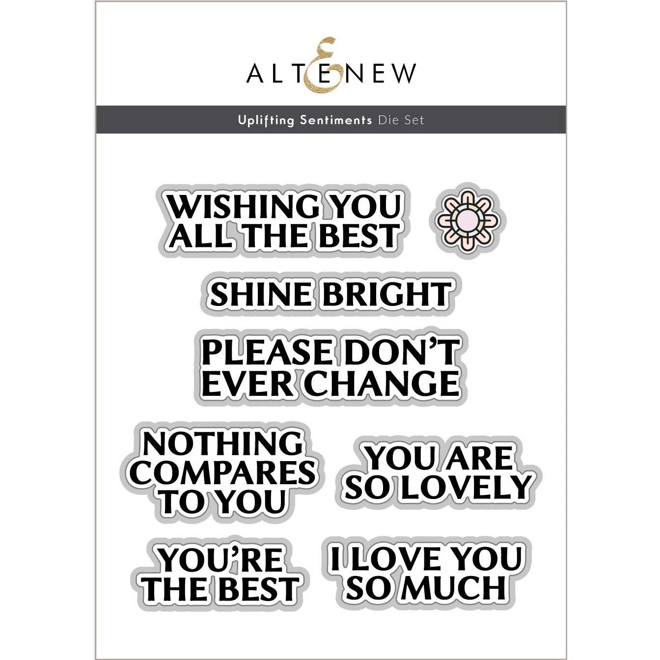 The Altenew Uplifting Sentiments Dies offer the opportunity to share joy and encouragement through heartfelt sentiments. This Die Set seamlessly coordinates with the Uplifting Sentiments Stamp Set and comprises 8 dies.