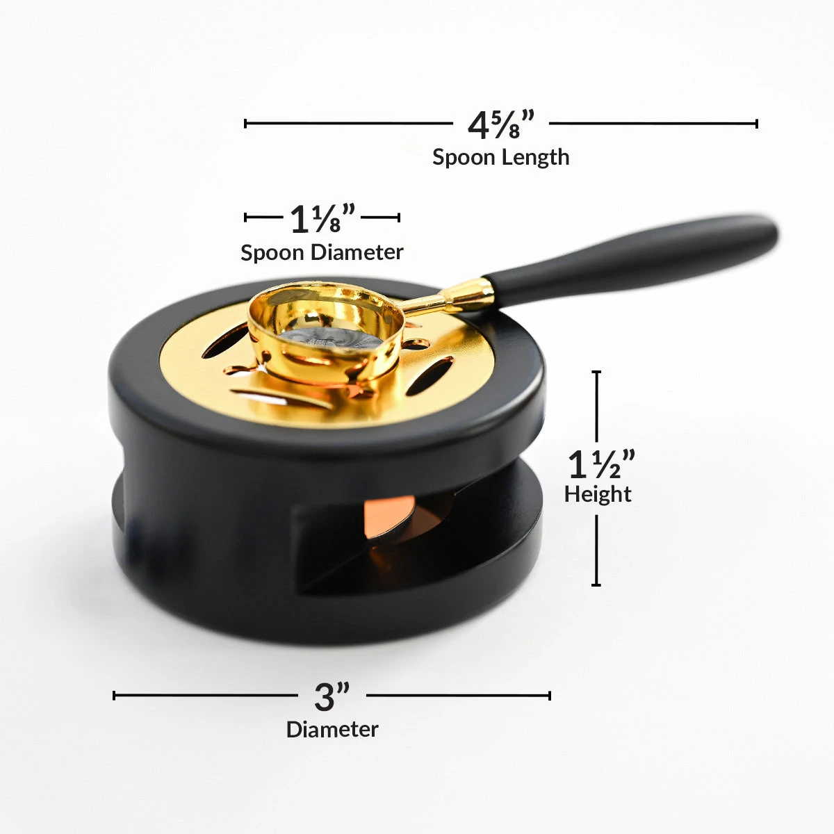 - Crafted from high-quality heat-insulating wood and polished metal, the warmer ensures efficient wax melting and safe handling. The included durable, heat-resistant wax seal spoon that is 2.75 x 4.57 inches and is made from wood and copper, providing a comfortable grip and long-lasting performance.