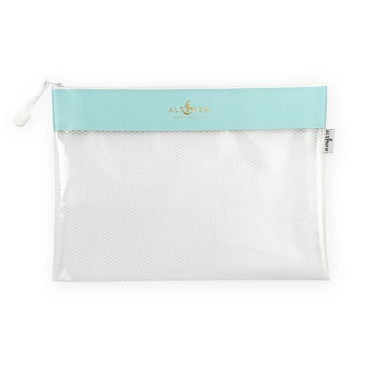 Durability and Style: The pouch combines sturdy mesh encased in plastic, providing durability and a glimpse of its contents. It also features a gold foiled and embossed Altenew logo on a strip of colored vegan leather, adding a touch of style to your craft room.