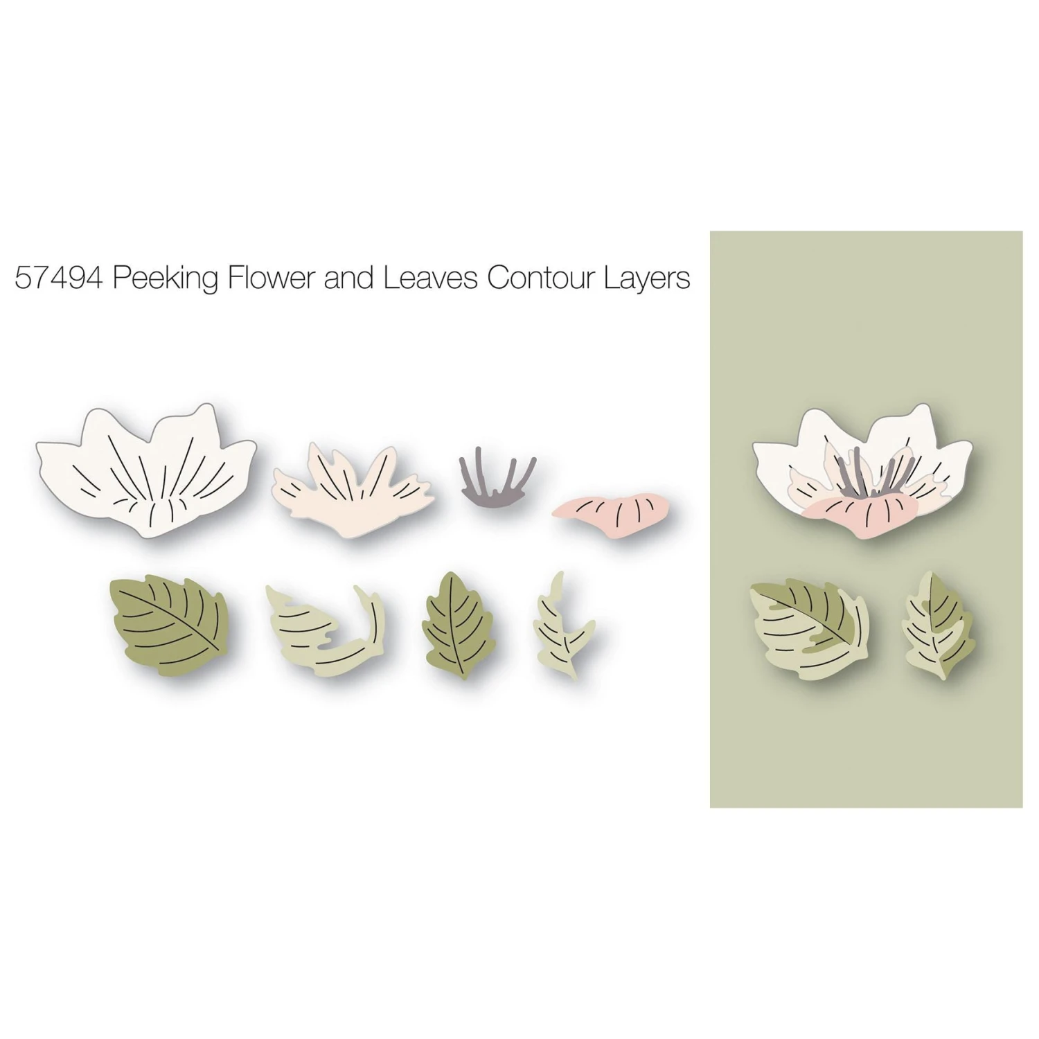 Birch Press Design Peeking Flower And Leaves Contour Layers Dies 57494*