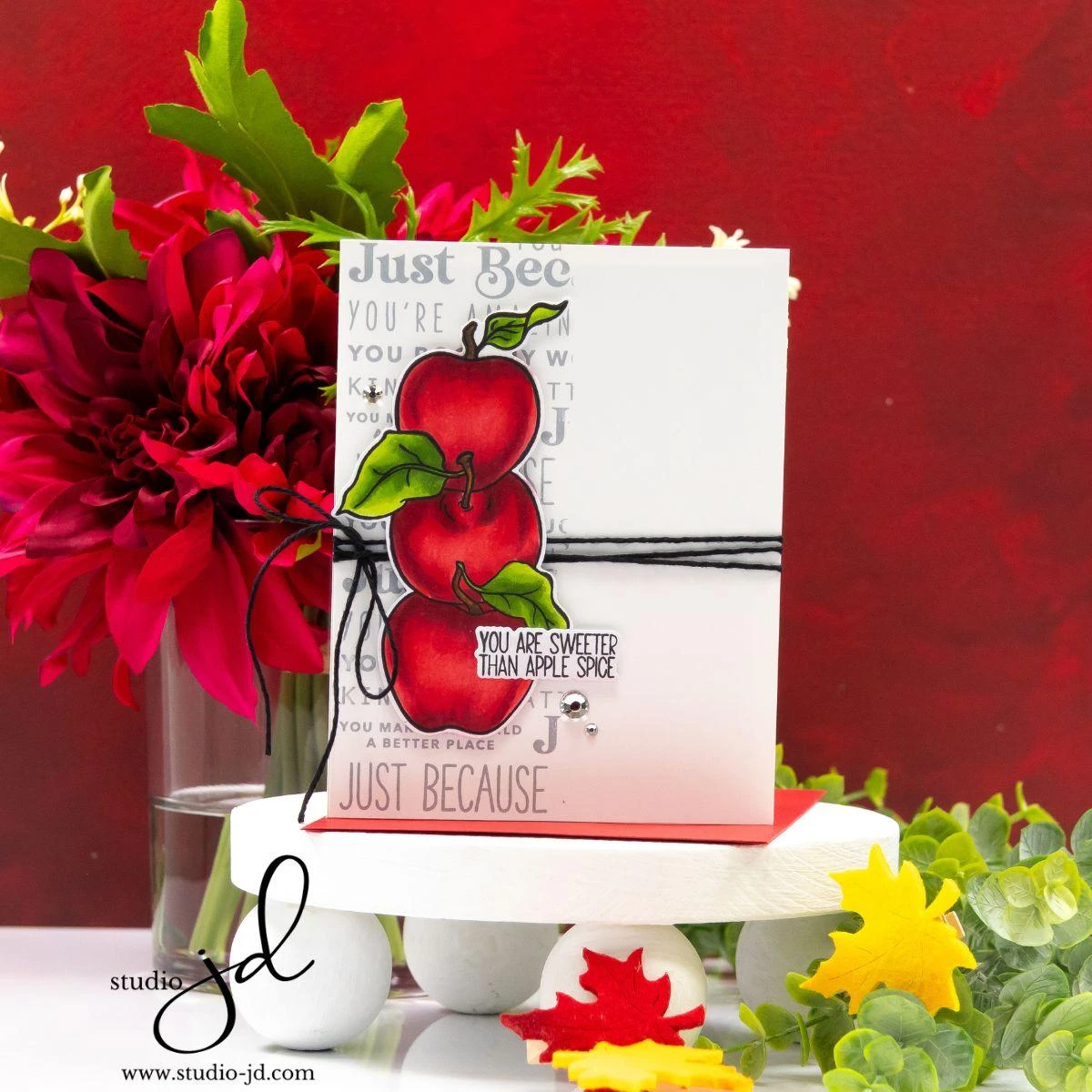 You’ll also find fun accessory pieces, including a chocolate-dip drip for the cone, plus a face, leaves, and an acorn to customize the apples. To finish it off, six delightful coordinating sentiments are included. This special bundle also includes the coordinating die set for perfectly cut images every time– no fussy cutting required! Sentiments included: