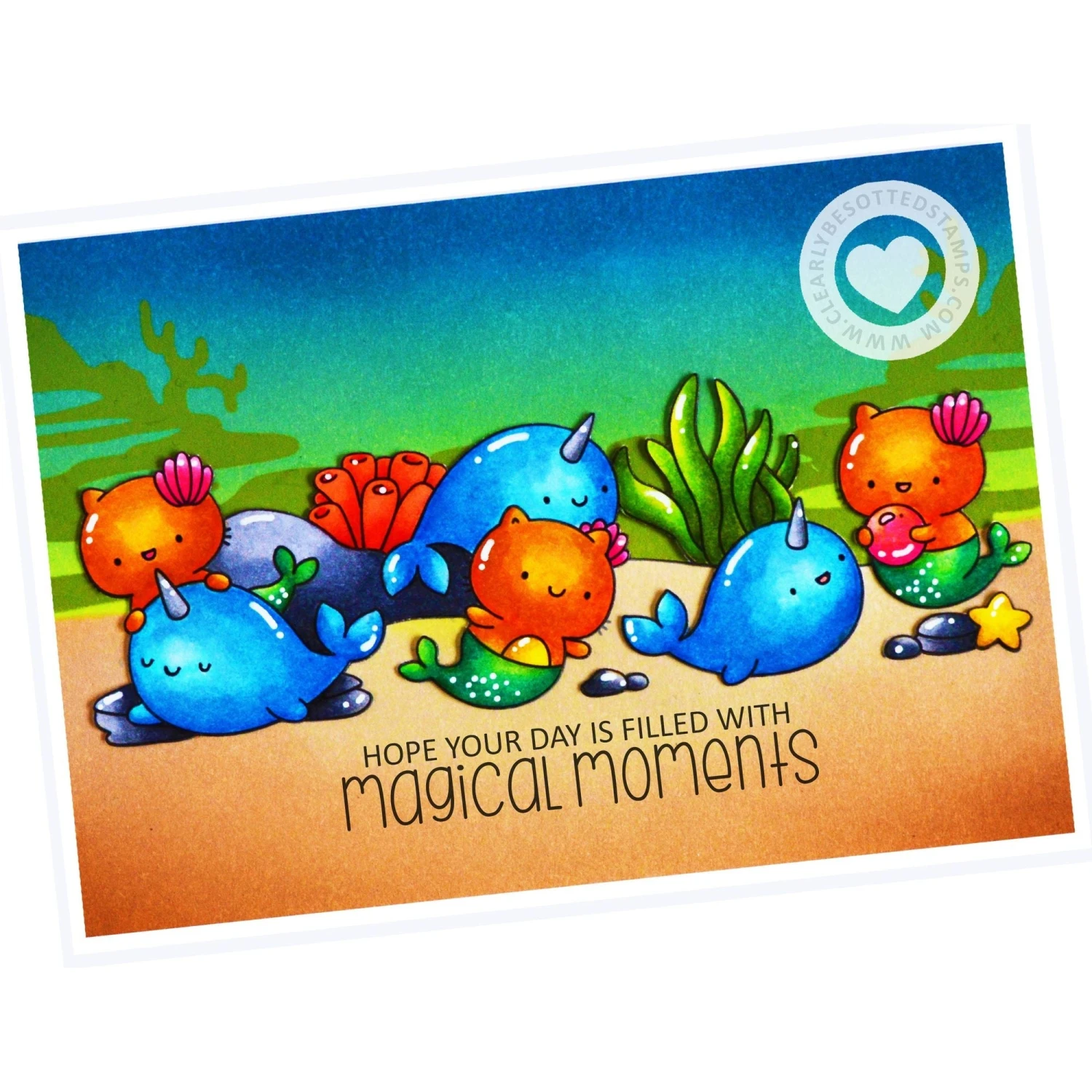 Clearly Besotted Telling Tales Line Up Clear Stamps is a delightful 4×6 inch clear stamp set that includes charming borders of plushy critters themed for a medieval castle and a mermaid underwater adventure. These whimsical designs are perfect for creating fun and imaginative cards for any occasion.