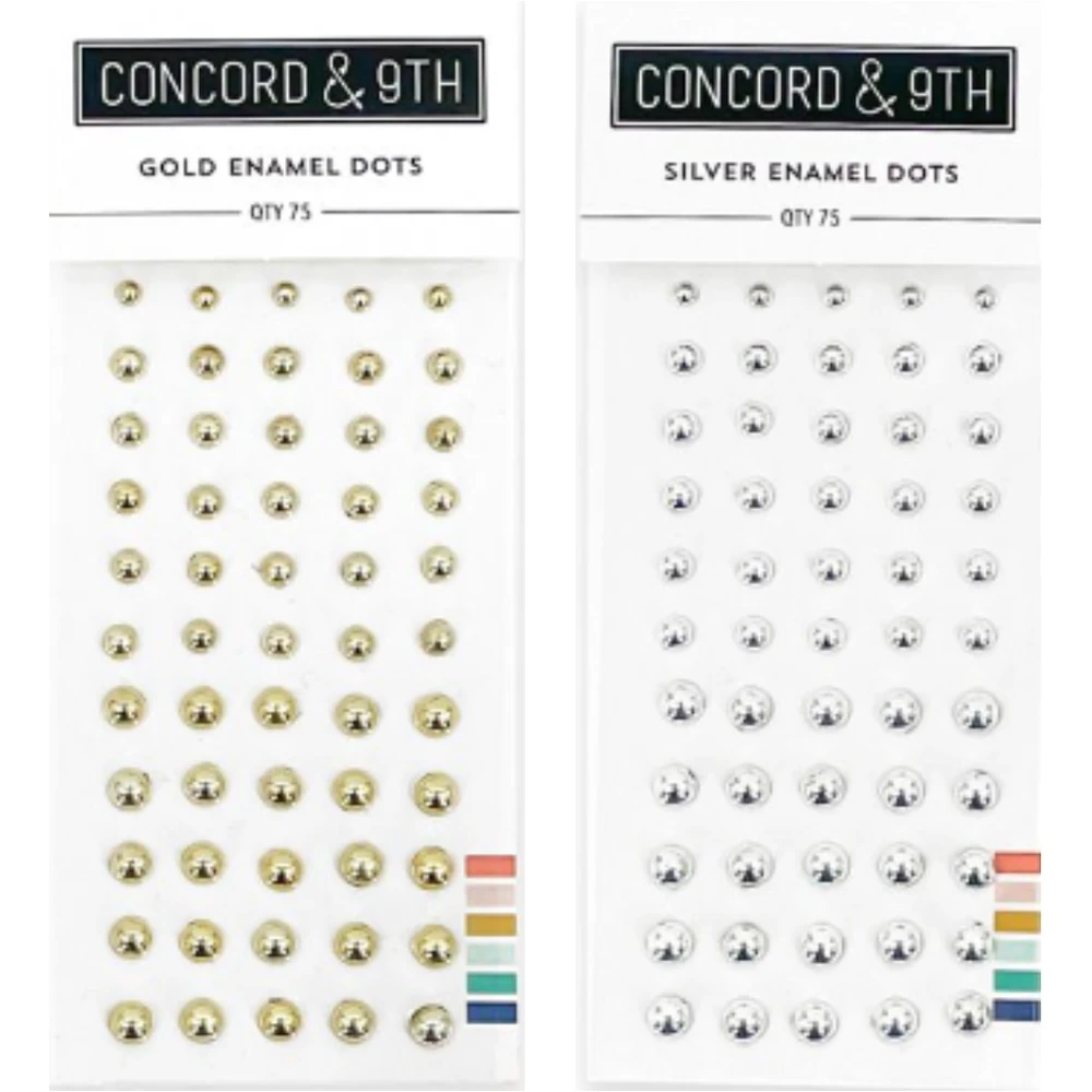 Introducing the Concord & 9th Gold and Silver Enamel Dots Bundle! Elevate your crafting with these dazzling dots, each conveniently packed in a 75-piece set. The Gold Enamel Dots feature a radiant gold finish, while the Silver Enamel Dots boast a gleaming silver finish. Perfect for embellishing cards, scrapbook layouts, and more, these versatile dots come with an adhesive backing for easy application on various surfaces. Add a luxurious flair to your creations and elevate your crafting experience with Concord & 9th Enamel Dots today!