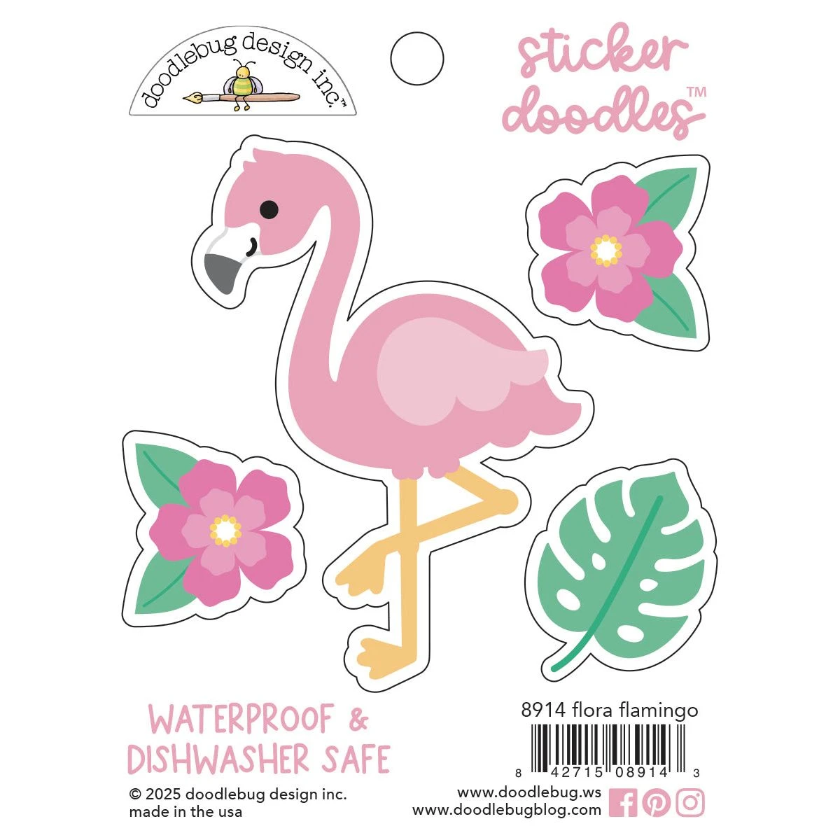 Add a splash of tropical charm with the Doodlebug Flora Flamingo Sticker Doodles! This set features a cute pink flamingo, two vibrant hibiscus flowers, and a lush tropical leaf. Perfect for personalizing travel mugs, laptops, notebooks, and more with a fun, playful touch. Measurements are approximate and in inches: Flamingo 2.5 x 2 and Leaf 1 x 1.
