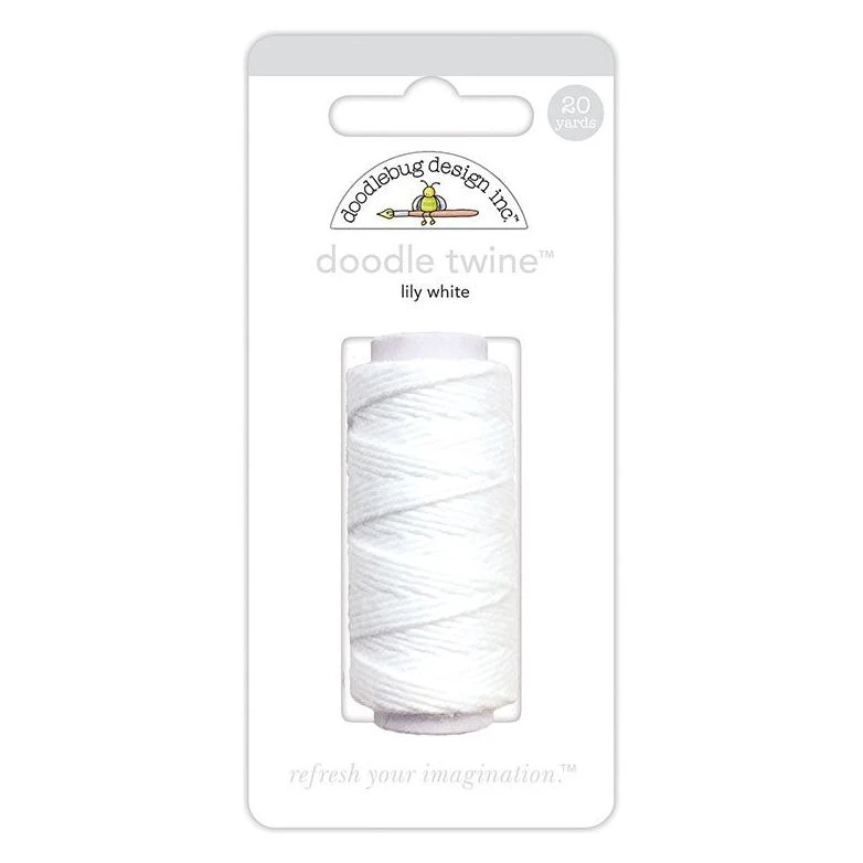 Doodlebug Lily White Doodle Twine is a decorative baker’s twine that comes in a solid white color. It is typically used for crafts, gift wrapping, and other creative projects that require a pop of color and texture. The twine is made from high-quality materials and is durable enough to hold knots and bows securely. It comes in a convenient spool that allows for easy storage and dispensing, making it a great addition to any crafting or DIY toolkit. Contains 20 yards on one spool and made of 100% cotton, 4-ply, and approximately 1mm thick.