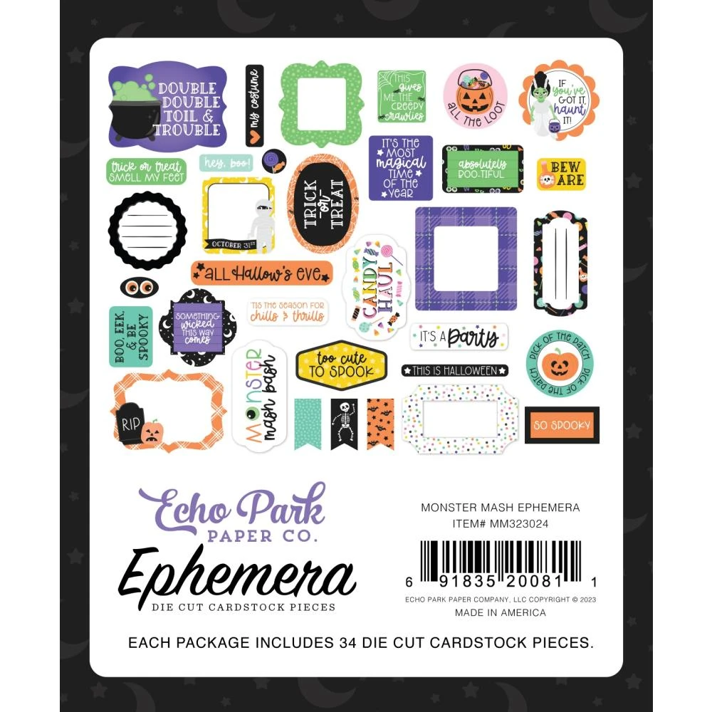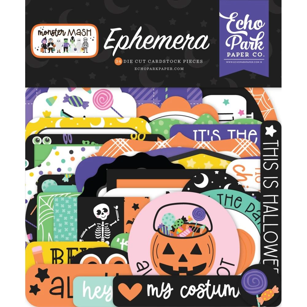 This 4.5 x 6.5 inch package contains thirty-four die-cut cardstock pieces. Made in USA. With Halloween-inspired illustrations, including moons, stars, jack o lanterns, trick or treat buckets, candy, bats, gravestones, pumpkins, cobwebs, eyes, and more!