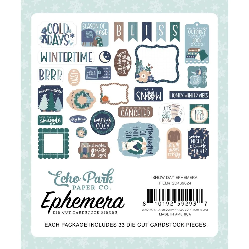 Echo Park Snow Day Ephemera is just what you need to complete your crafty creations! These charming embellishments bring whimsy, depth, color, and style to greeting cards, scrapbook layouts, mixed media, altered art, and more. This 4.5 x 6.4 inch pack features ephemera with delightful florals, snowflakes, wreaths, winter gear, plus snug flannel plaid and gingham patterns in cool shades of blue, green, beige, and blush. Perfect for adding a cozy winter vibe to any project!