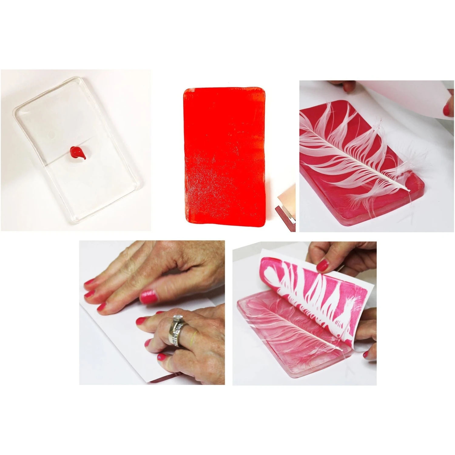 The Gelli Arts Reusable Gel Printing Plate is your go-to choice when you’re in the mood for printing. This gel plate is always ready for your creative endeavors. It’s made with mineral oil and is crafted from a hypoallergenic polymer material, containing no latex or gelatin. The plate measures approximately 3 x 5 inches. To use this gel plate, simply add paint, use a brayer to evenly spread the paint, and then apply textures, stencils, or any other creative elements. Afterward, you can pull a print with paper. Cleaning and maintaining this gel plate is a breeze, and it can be used repeatedly. Store it at room temperature in the clear film provided, and you can enjoy the convenience of using it over and over again for your printing projects.