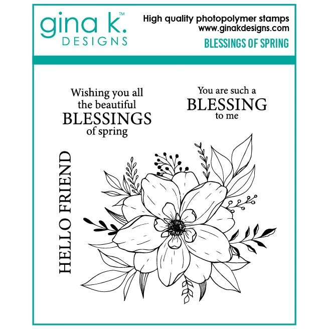 Elevate your crafting with Gina K Designs Blessings of Spring Stamps. This exquisite 4×4 inch 4-piece clear set features a stunning large flower, lush greenery, and 3 complementary sentiments. With just one stamp, create beautiful cards, tags, and more. Let your creativity bloom with this premium, clear stamp set. Sentiments included: