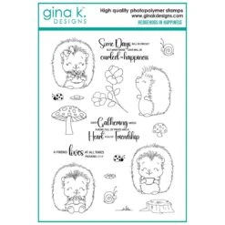 Bring charm and warmth to your projects with the Gina K Designs Hedgehogs in Happiness Stamps. This 6×8 inch clear stamp set features four adorable hedgehogs—one with a bow holding flowers, one with arms outstretched, one with a coffee cup, and one with a cup of treats—alongside coordinating elements like a tree stump, mushrooms, flowers, and ladybugs. Complemented by thoughtful sentiments, this set is perfect for crafting delightful cards, tags, and more that capture joyful moments with personality and detail. Sentiments and bible verse included: