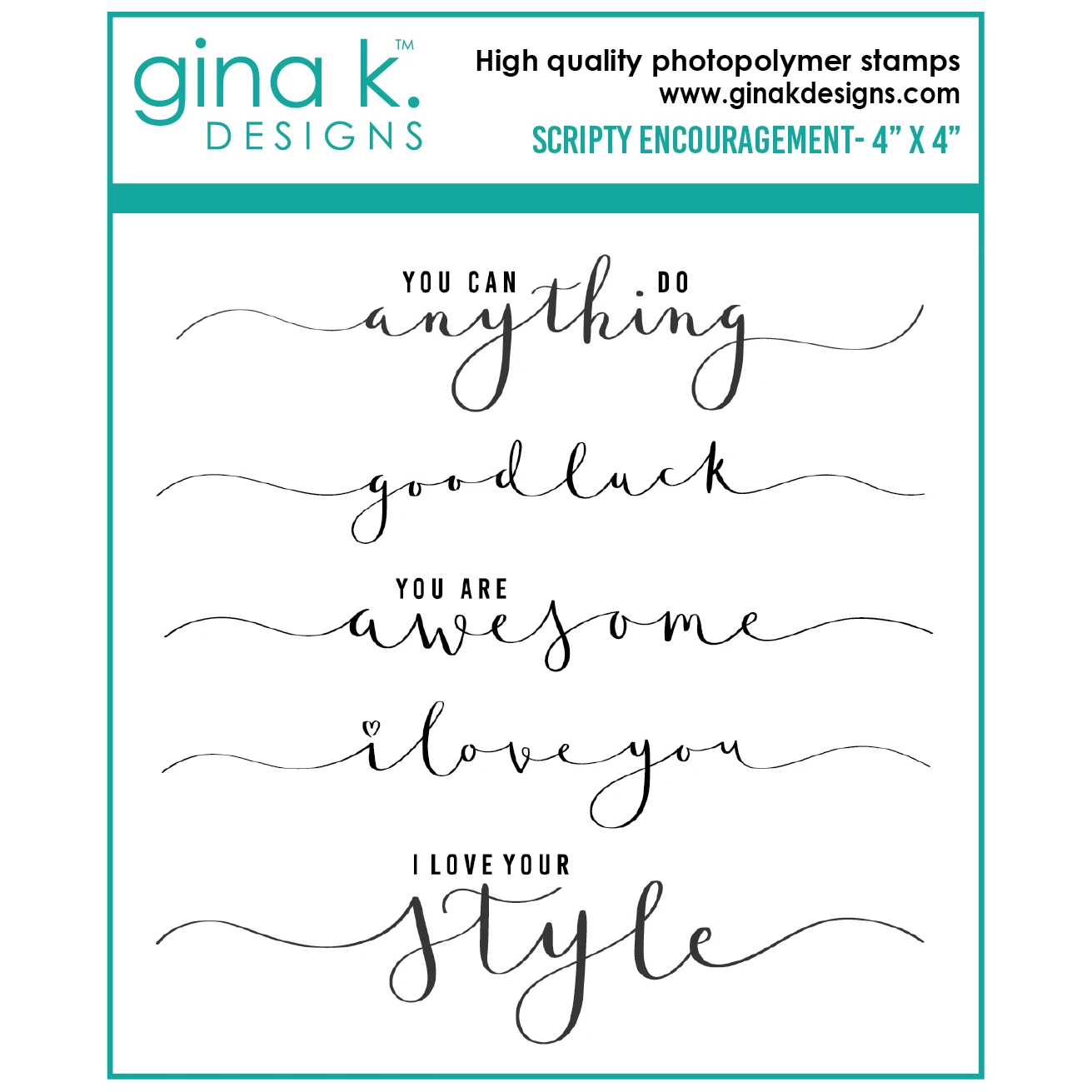 Gina K Designs SCRIPTY ENCOURAGEMENT Clear Stamps 6408