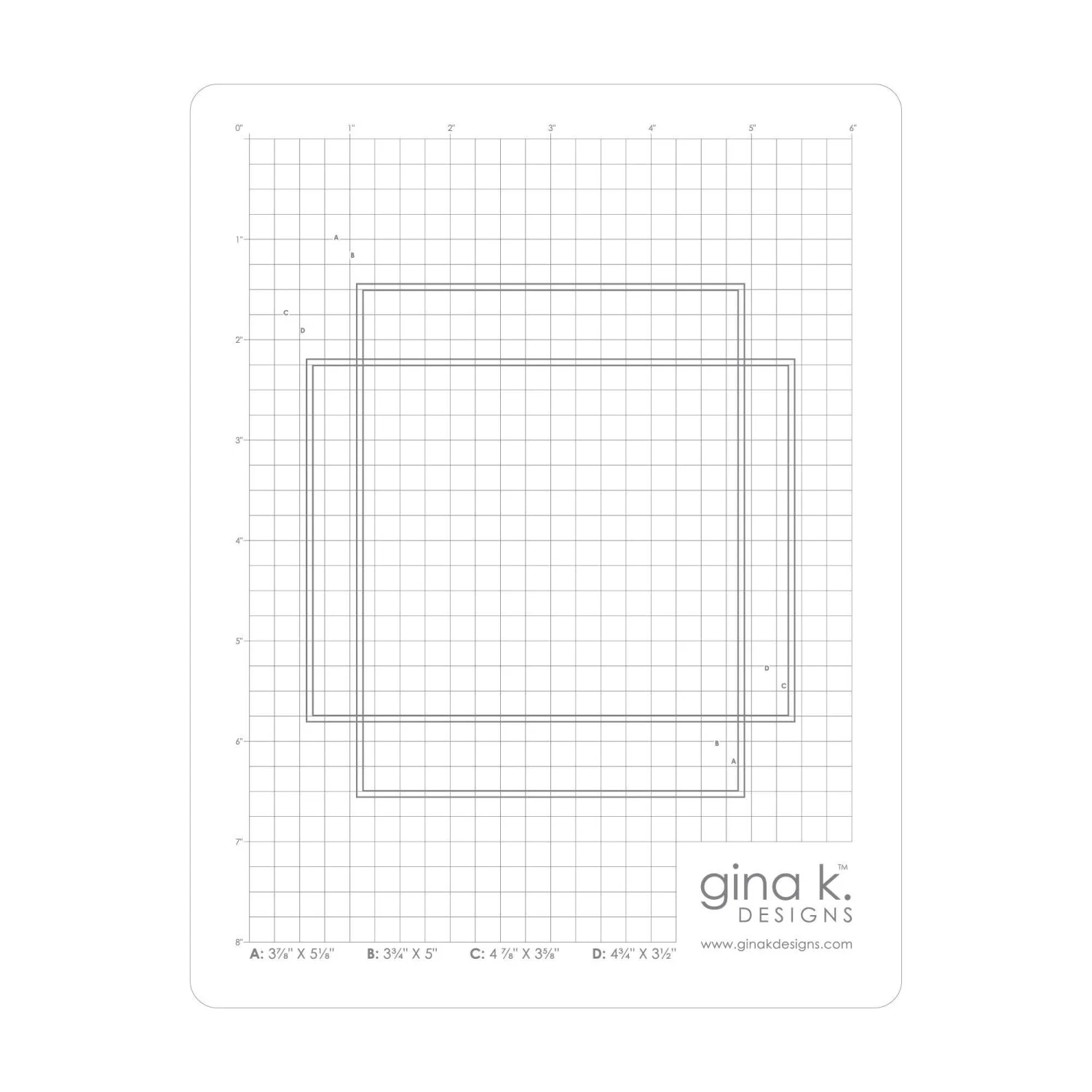 The Gina K. Designs Sticky Mat holds your card stock in place! This low-tack mat is perfect for stenciling, ink blending, and it fits inside of the Misti Stamp Tool. Two layering guides are printed on the mat to make layering your Master Layouts 1 and 2 panels a breeze!