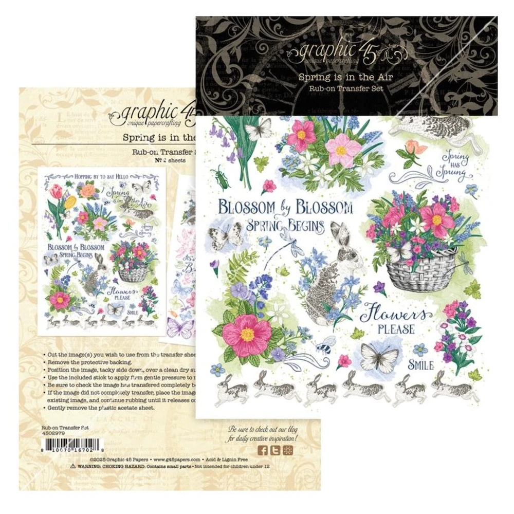Embrace the beauty of spring with Graphic 45’s Spring Is In The Air Rub-On Transfers. This 6 x 8 inch two-sheet set features delicate designs that seamlessly blend onto any smooth surface. Perfect for adding vintage charm to cards, scrapbooks, and mixed media projects.