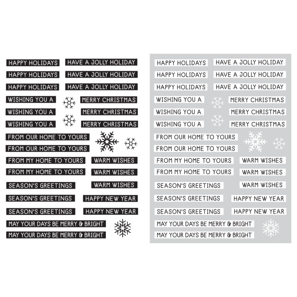 The Hero Arts Holiday Message Strips Hero Transfer Rub Ons set comprises two 6 x 8 inch rub-on transfer sheets, each adorned with multiple designs per sheet. These versatile transfers can be cut apart and used individually to enhance your creative projects. They are suitable for application on a variety of smooth surfaces, including paper, tile, acetate, wood, and more. For your convenience, the set also includes a wooden stick, making it easy to apply the transfers precisely and beautifully.