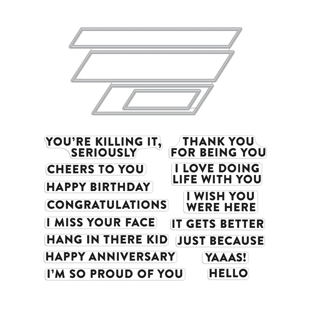 The Hero Arts Stamp and Cuts XL Ralph Tyndall Essential Messages is a versatile crafting set that includes a combination of stylish clear stamps and Frame Cuts. This set is designed for use with creative techniques to add dimension and artistic flair to your cardmaking projects.