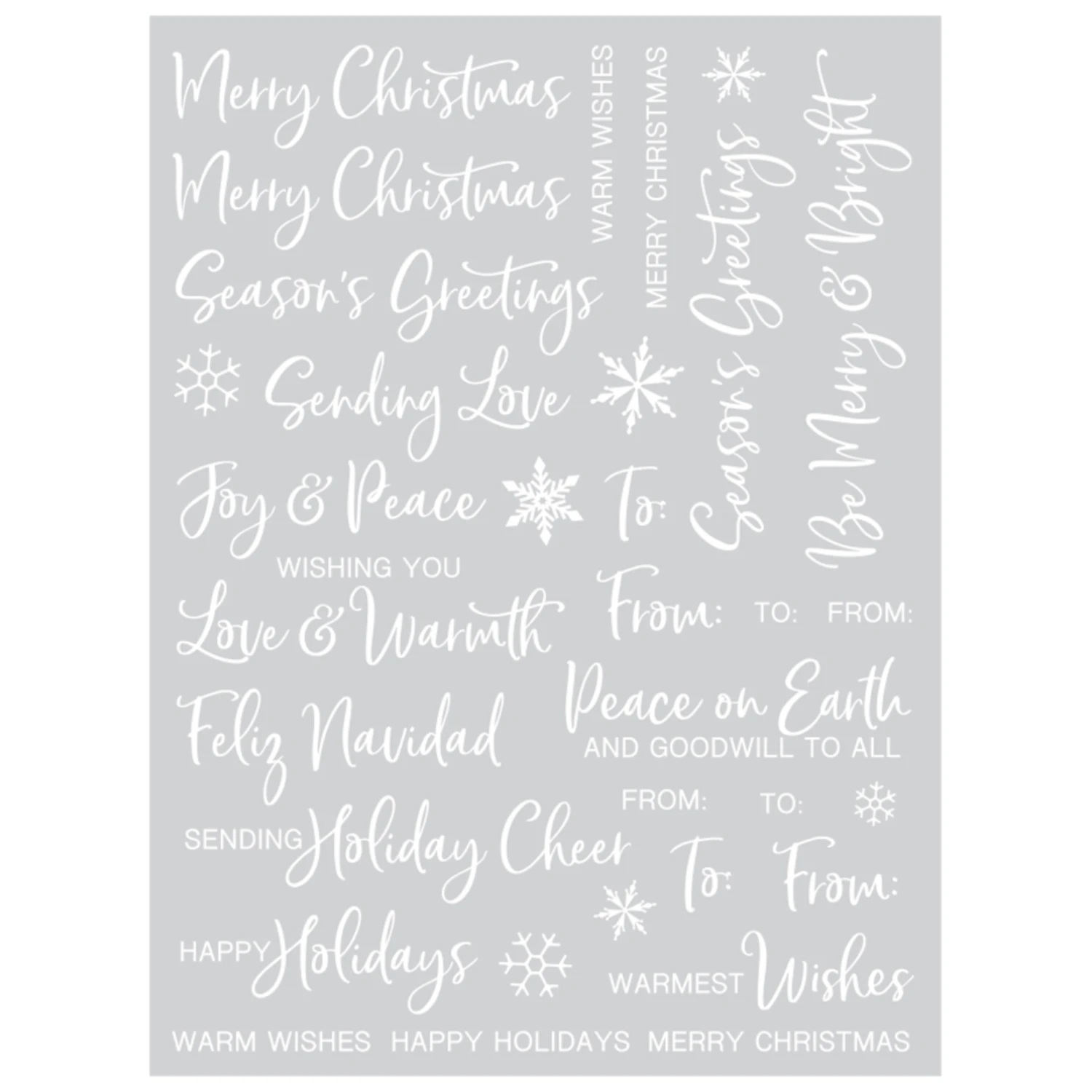 The Hero Arts Winter Script Messages Hero Transfers Rub Ons set includes two 6 x 8 inch rub-on transfer sheets, each adorned with multiple designs per sheet. These versatile transfers can be cut apart and used individually to enhance your creative projects. They are suitable for application on a variety of smooth surfaces, including paper, tile, acetate, wood, and more. For added convenience, the set also includes a wooden stick, making the application of the transfers smooth and precise.