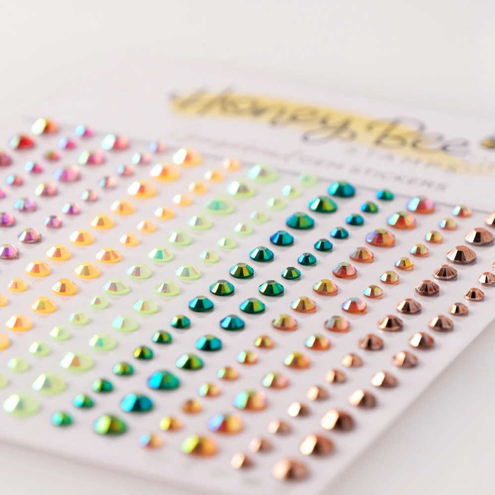 Add some sparkle and shine to your next handmade card or paper craft project with these Honey Bee Gingerbread Gem Stickers. Each pack includes 210 self-adhesive crystal gem stickers in a variety of sizes and iridescent shades, making them the perfect accent for any project. Choose from 3mm, 4mm, and 5mm gems in shades of magenta, yellow, green, and bronze.