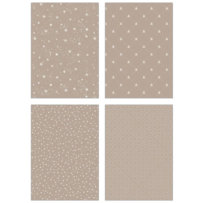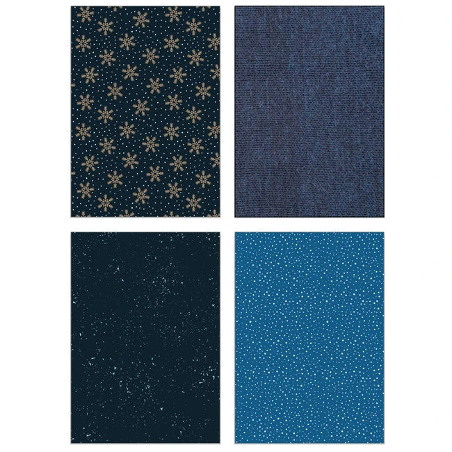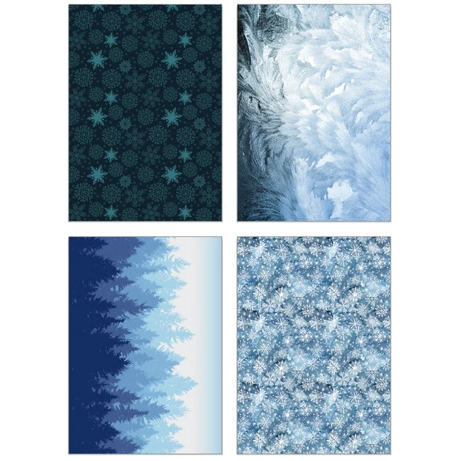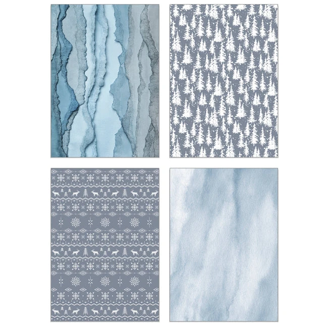 Inside this exclusive paper pad, you’ll find a treasure trove of 24 double-sided sheets, each graced with 24 coordinating patterns in shades of blue, grey, and light brown. These sheets serve as your artistic canvas, ready to bring your creative vision to life. Crafted with precision, they are printed on high-quality smooth satin finish 65lb. cover cardstock, offering a tactile luxury that elevates the sophistication of your creations. Patterns feature snowflakes, trees, bare wintery branches, and fair isle patterns.