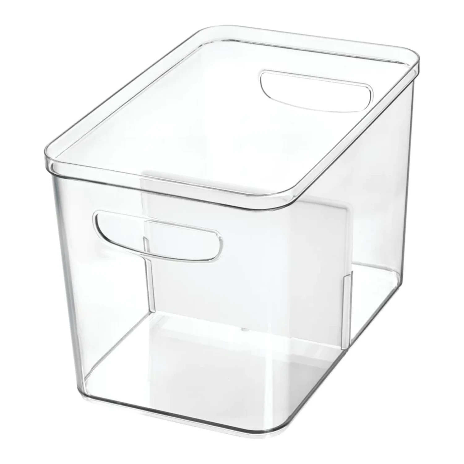 Upgrade your storage with the iDesign Crisp Divided Bin made with iD renew 100% Post-Consumer Recycled Clear Plastic. This divided bin provides organization in your craft room or anywhere it is needed. The integrated divider keeps items organized and upright and can be removed for a customized storage solution. The open top and transparent sides keep items visible and accessible so you can see what’s inside, while the integrated handles make it easy to carry and provide quick reorganization. Pair it with other bins in the Crisp collection for an effortlessly coordinated and organized craft room. It stands up to everyday use and is easy to clean with mild soap and water. This bin creates instant organization, measuring approximately 8 x 12 x 8 inches.