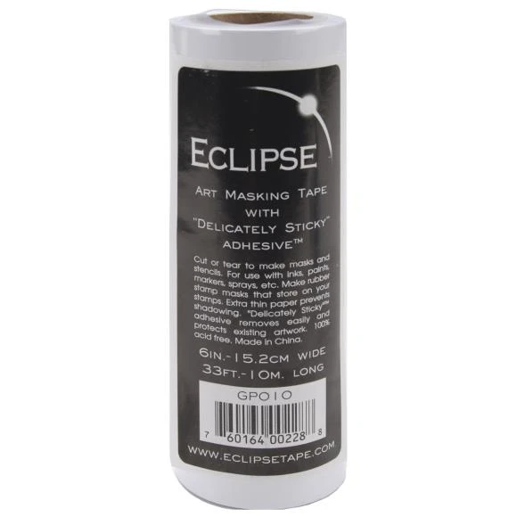 This delicately sticky masking tape is perfect for making stencils for use with inks, paints, markers, sprays and more. Tape removes from your paper, canvas, fabric and more easily without damaging any existing art work. Roll is approximately 6 inches wide by 33 feet long. Enough tape for hundreds of masks and repositionable stickers. Acid free.