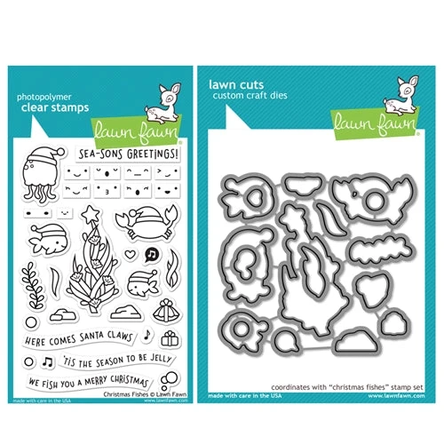 Lawn Fawn Set Christmas Fishes Clear Stamps And Dies