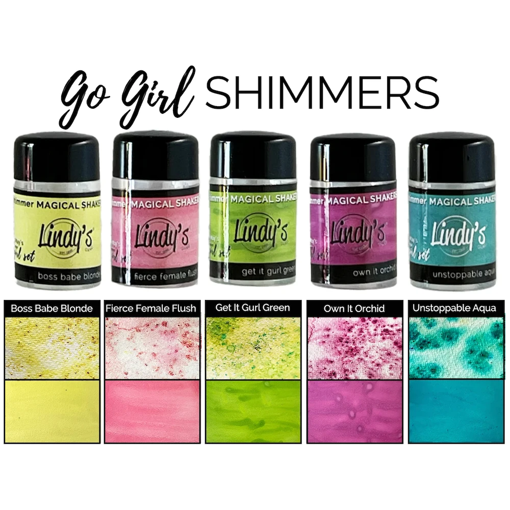 The Lindy’s Stamp Gang Go Girl Shimmer Shaker Set, crafted by the vibrant Natalie May, brings bold Aussie flair to your crafting projects. This 5-pack of non-toxic, acid-free dye-based powders is perfect for creating vibrant colors on paper, wood, and beyond. Simply sprinkle the powder on any porous surface and spritz with water for a striking stain, or mix it into resin, polymer clay, or other mediums for custom hues. Adjust the intensity by adding a little for soft tints or more for rich, bold color. Each 10g shaker jar includes: