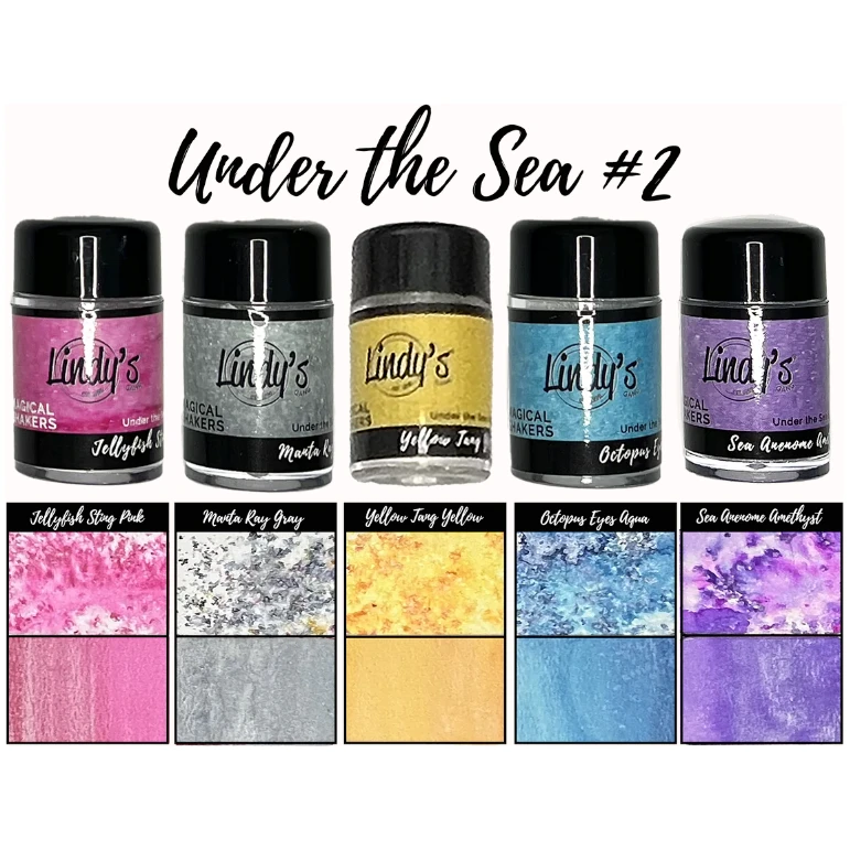 Dive into creativity with Lindy’s Stamp Gang Under the Sea 2 Shaker 5 Pack. Perfect for use on everything from paper to wood, these non-toxic, acid-free, dye-based powders are designed to add a splash of vibrant color to your projects. Simply sprinkle the powder onto a porous surface and spray it with water for an instant, stunning stain. You can also mix the powders into any art medium, including resin and polymer clay, for customized effects. Add a little for a subtle hue or a lot for a deep, rich tint.