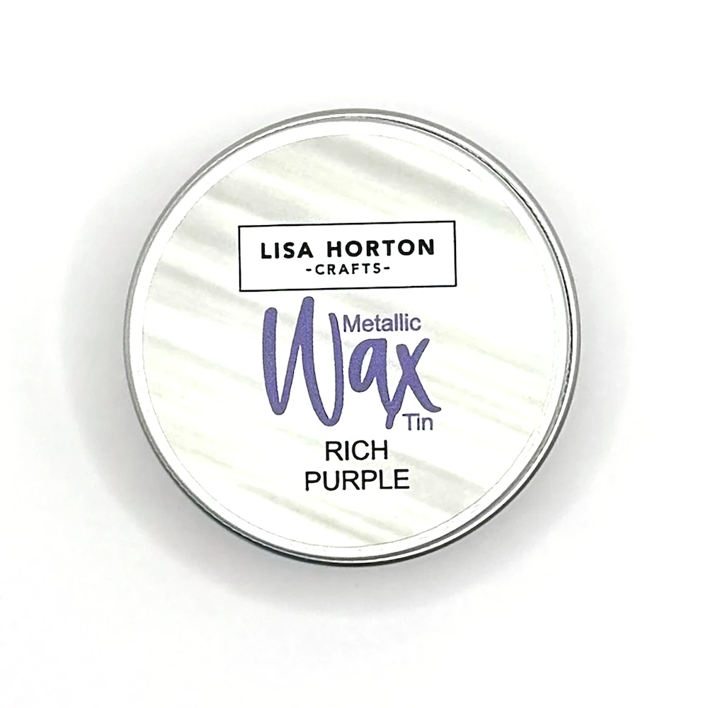 Lisa Horton Crafts Rich Purple Metallic Wax is a versatile lustre wax in a handy metal tin. Perfect for adding a shimmering finish to cards, embossing folders, clay, MDF, and colored cardstock. Enhance your crafts with ease!