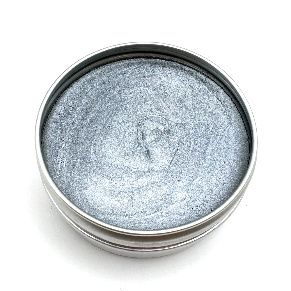 Lisa Horton Crafts Silver Metallic Wax is a versatile lustre wax in a handy metal tin. Perfect for adding a shimmering finish to cards, embossing folders, clay, MDF, and colored cardstock. Enhance your crafts with ease!