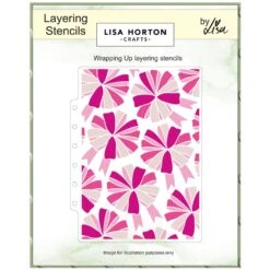 The Lisa Horton Crafts Wrapping Up Stencil Set features a festive pattern of layered gift bows, perfect for adding color, depth, and cheer to holiday and celebration-themed projects. Use these stencils on their own or pair them with the coordinating Wrapping Up 3D Embossing Folder for added texture and dimension. Great for ink blending, paints, or texture mediums.