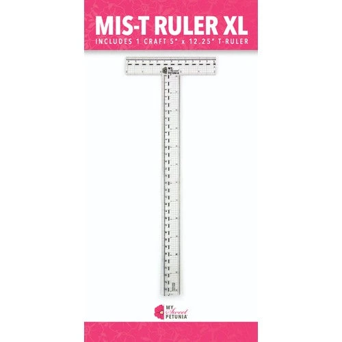 Designed and sized for paper crafters, the My Sweet Petunia Mis-T Ruler includes metric and imperial clear T rulers, with multiple units of measure, an inset steel ruler for cutting and a see-through design that allows you to get perfect lines and cuts every time. Ruler is approximately 12.25 inches long.