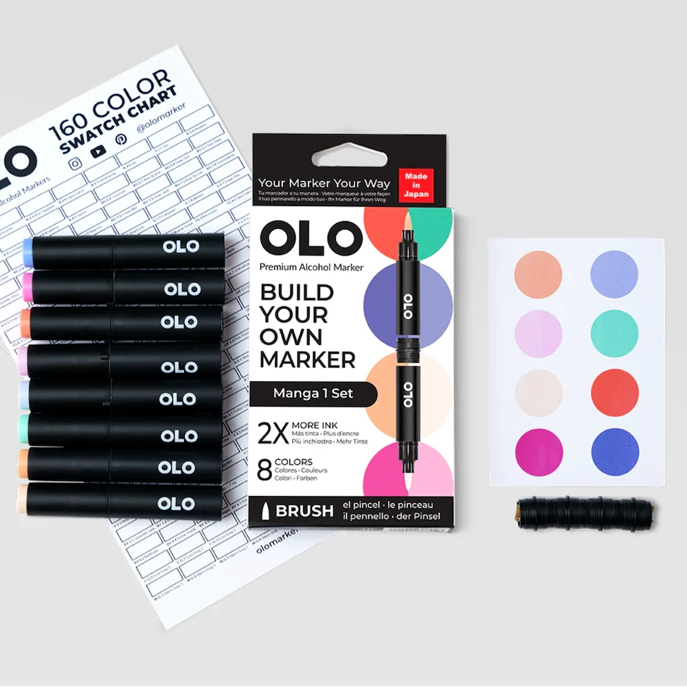 Bring your manga characters and scenes to life with the OLO Manga 8pc Brush Set 1. This curated collection includes vibrant, blendable hues perfect for expressive storytelling, character design, and dynamic illustrations. A go-to set for adding bold color and energy to your artwork.