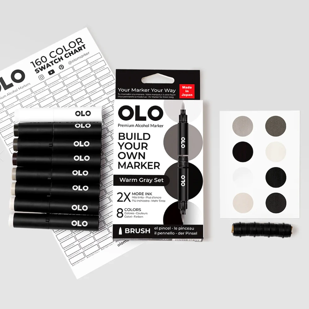 The OLO Warm Gray Brush 8 Piece Marker Set includes a versatile range of warm gray tones ideal for shading, soft shadows, and adding warmth to your artwork. This curated set is perfect for portraits, natural scenes, and detailed illustrations requiring subtle depth.