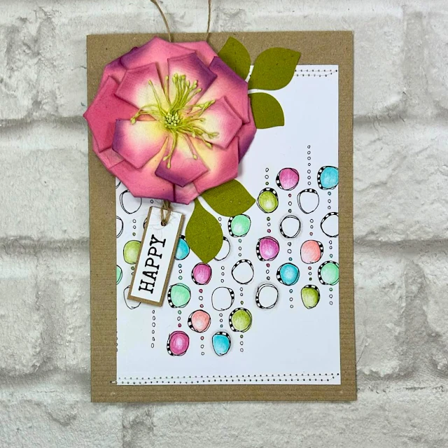 The Paper Artsy JOFY Mini Cling Stamp is a credit-card-sized rubber stamp, measuring approximately 3 x 2 inches. Designed by Jo Firth-Young, an artist known for her uniquec style, this stamp offers versatility for various crafting projects, including card making, artist trading cards, inchies, and more. Mounted on EZ mount, it features a foam cushioning layer on the back for easy use. To use the stamp, simply peel it off the index sheet and position it onto an acrylic block. This particular stamp features wonky circles that appear to be hanging from chains or interspersed among smaller dots, creating a repeating background effect. Whether used vertically or horizontally, this stamp adds an intriguing and dynamic element to your projects.