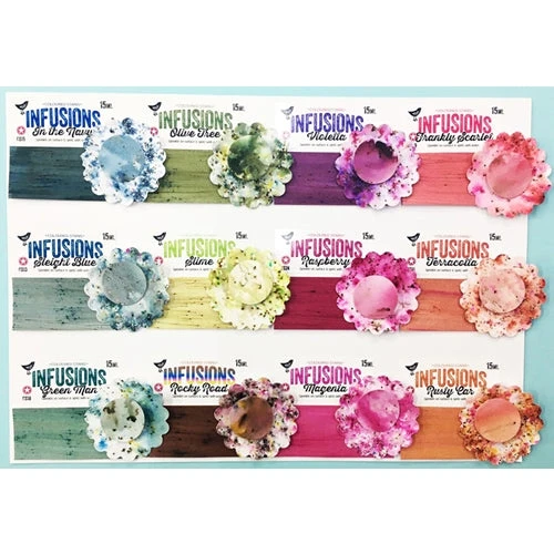 Infusions are water soluble particles with 2 components: dye color pigment suitable for paper/ fabric mixed with Walnut stain.