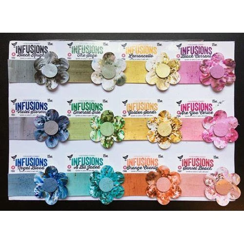 Infusions are water soluble particles with 2 components: dye color pigment suitable for paper/ fabric mixed with Walnut stain.