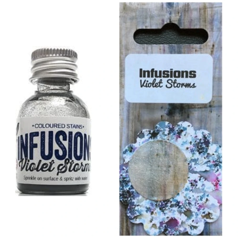 Infusions are water soluble particles with 2 components: dye color pigment suitable for paper/ fabric mixed with Walnut stain.