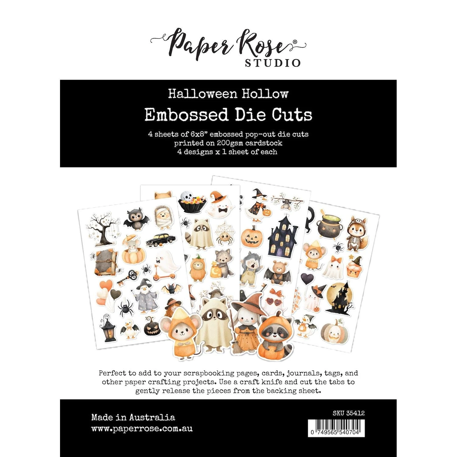 Paper Rose Halloween Hollow Embossed Die Cuts are a fun and versatile addition to your crafting collection. This set includes four A5 sheets (approximately 6 x 8 inches) of pop-out die cuts, crafted from sturdy 200gsm paper for easy removal. Each piece is enhanced with selectively embossed accents, adding texture and dimension to your projects. The whimsical designs feature animals such as bats, mice, raccoons, rabbits, foxes, and ducks dressed in festive costumes—witches, pumpkins, wizards, candy corn, skeletons, and more. You’ll also find haunted houses, ghosts, balloons, spiders, cauldrons, black cats, jack-o’-lanterns, spellbooks, keys, and other enchanting icons, perfect for Halloween-themed cards, scrapbooks, party décor, and mixed media projects.
