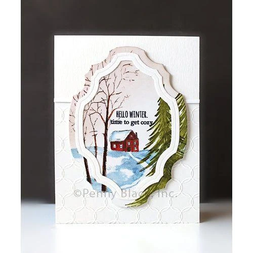 The Penny Black Linked Embossing Folder features a pattern of rows of interlinked circles, ideal for creating textured and modern backgrounds. The folder measures 6×6 inches, making it perfect for a variety of crafting projects.