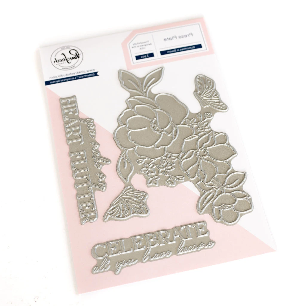 Designed to bring nature’s beauty to your creations, this exquisite set showcases a variety of flowers ranging from intricate, large blooms to delicate, smaller blossoms. Paired with delicate butterflies, this set exudes elegance and sophistication. Delight in the luxurious world of letterpress stationery with this stunning press plate design, perfectly compatible with the BetterPress Letterpress System from Spellbinders. No mess, just the elegant look of letterpress. For a high-end touch, use these press plates on premium watercolor paper. Coordinating products available for purchase separately: Butterflies in Bloom stencil 265125, Butterflies in Bloom die 265025, Butterflies in Bloom stamp 264925.