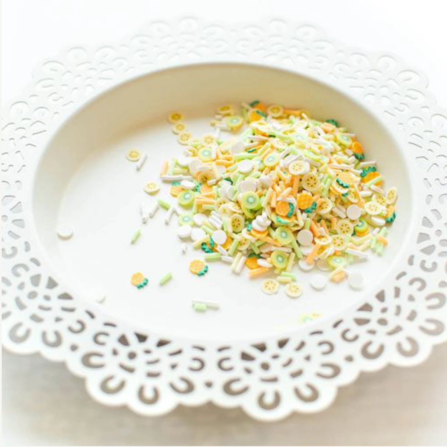 This pack includes an assortment of charming little round fruit slices and playful sprinkles, all designed in coordinating colors. Prepare to embark on a creative journey through a tropical paradise, where your craft projects will truly come to life with the vibrant beauty of this clay confetti.