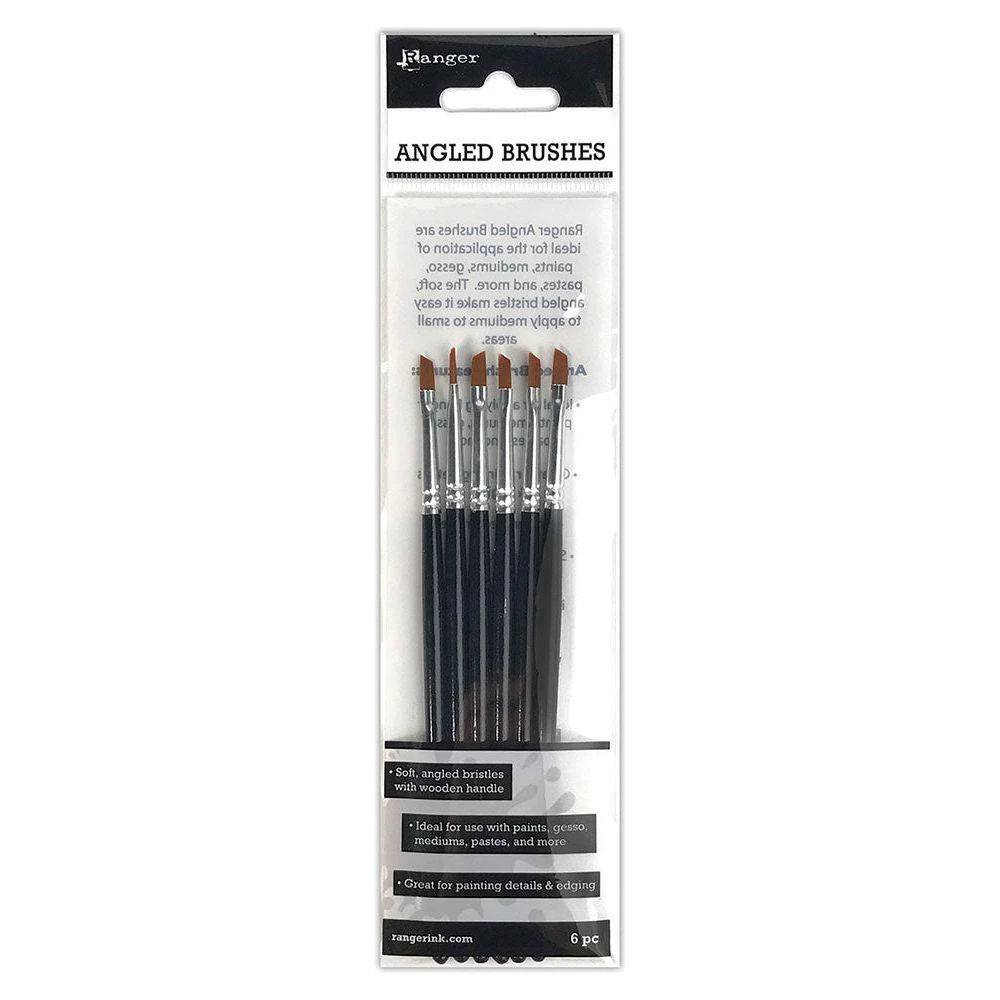 These Ranger Angled Brushes are designed for precision and versatility. Perfect for applying various mediums, including inks, paints, and gesso. Their soft, angled bristles and wooden handles make them ideal for painting, detailing, and edging. This set includes 6 brushes in different sizes.