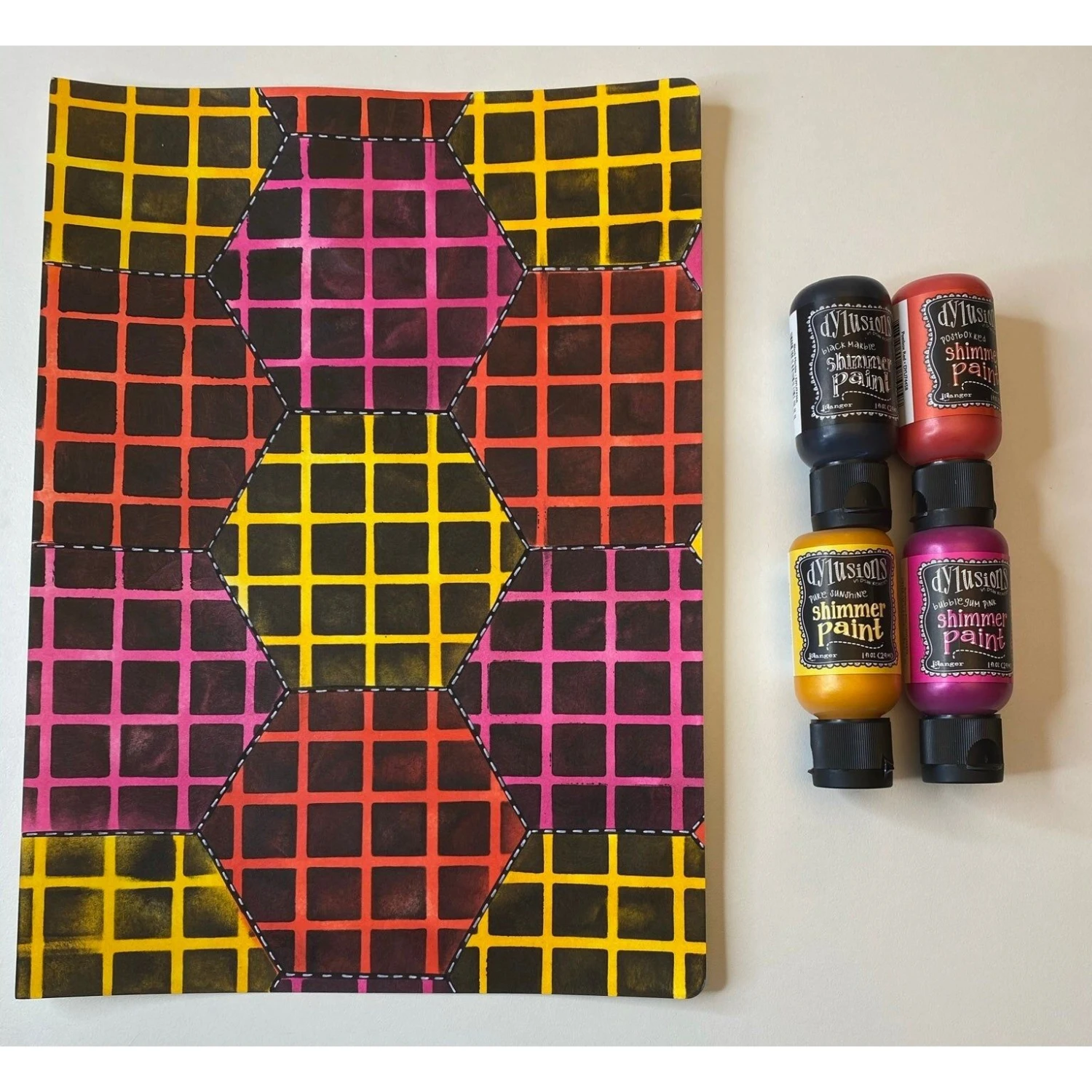 Add colorful pearlescent shimmer to any journal page, mixed media, or paper craft project with Dylusions Shimmer Paints. Shimmer Paints are pearlescent paints that add color and shimmer to paper, canvas, wood, fabric, and other porous surfaces. Shimmer Paints coordinate with the entire Dylusions color palette. Available in 1 oz flip cap bottles.