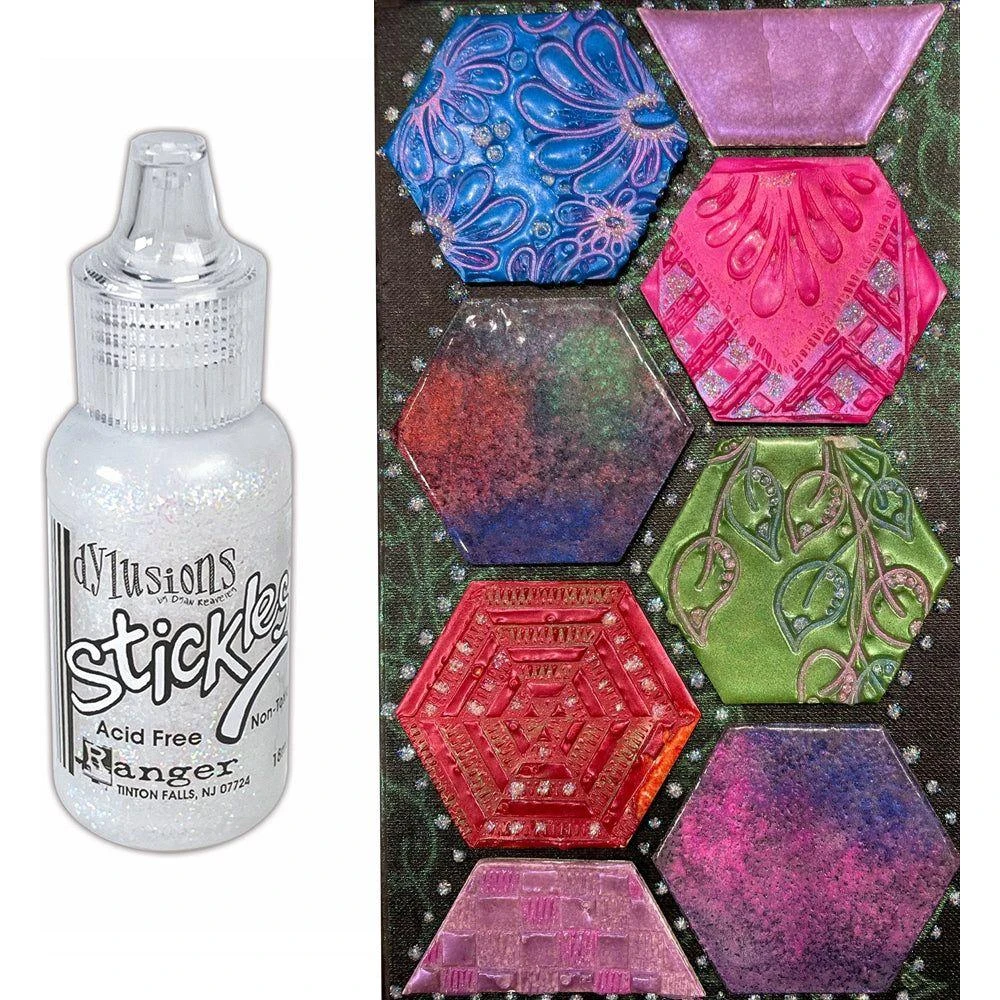 This Ranger Dylusions Designer Series Stardust Stickles is the perfect way to add sparkle and dimension to any craft project. With a fine-tip applicator, this glitter glue can be used to embelish any art journal, mixed media, paper craft projects, and more! You’ll be able to create sparkly accents quickly and easily with this .5oz (14.7ml) bottle of Stickles.